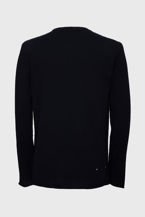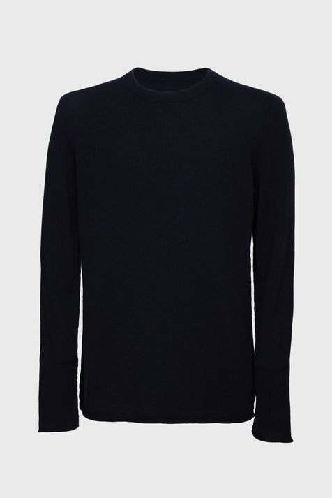 Crew neck long t-shirt style jumper - outerseams & rolled edge finish - regular cashmere jersey knitting stitch.