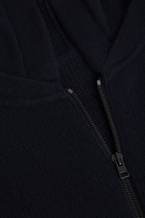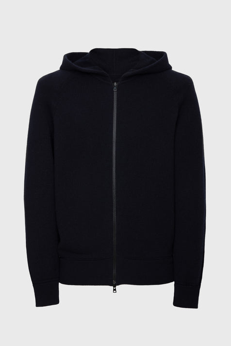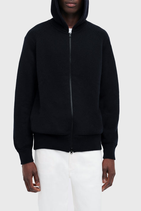 Zip-up hoodie raglan cardigan in loopback cashmere.