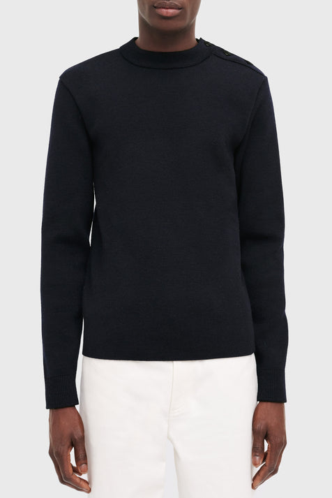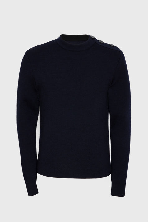 Original sailor jumper with buttoned shoulder in new wool and authentic compact knit cashmere.