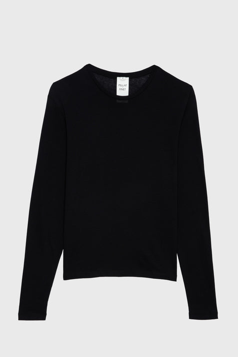 Cotton and cashmere crew neck long sleeves t-shirt.