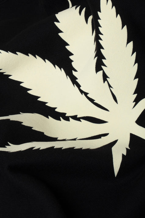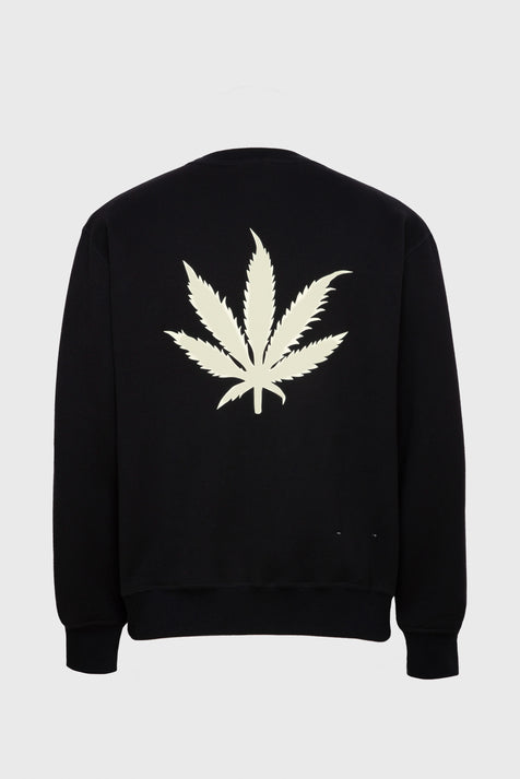 Sweatshirt en molleton dense 100% coton, intérieur gratté, col rond, manches droites, poches cotés, feuille imprimée au dos en encre gonflante mate.